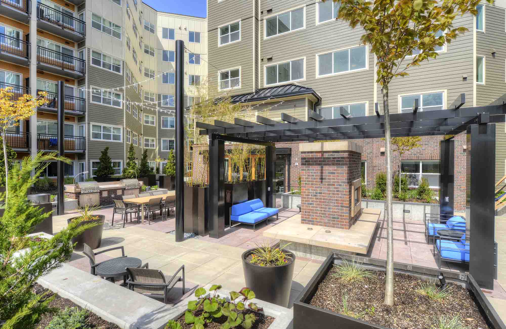 - Courtyard with Seating, Lush Landscaping, Grill Stations, and Fireplace